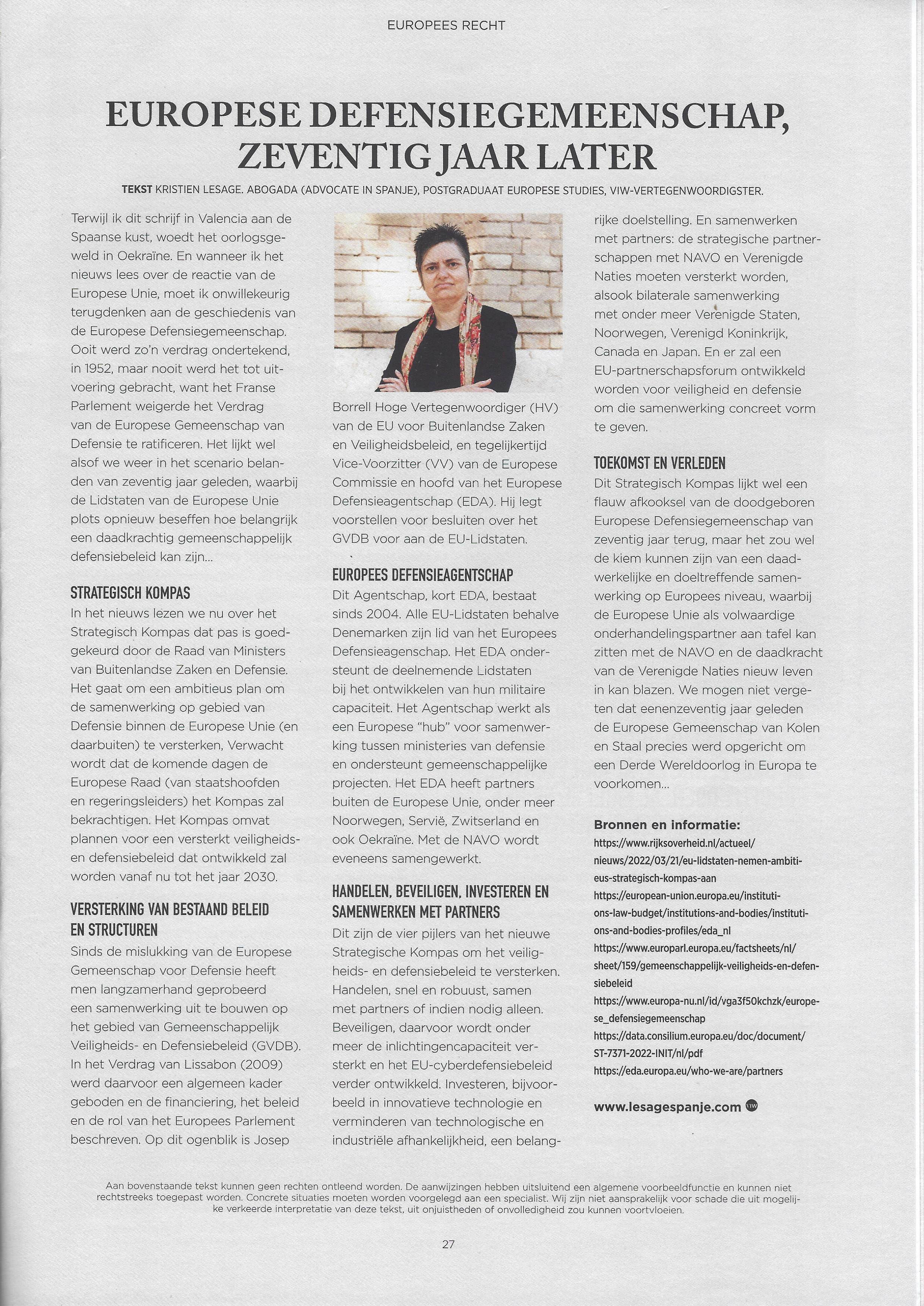Dit artikel werd alweer een hele tijd geleden gepubliceerd, toch denk ik dat de lectuur nu interessant kan zijn. Zeventig jaar geleden werd een poging gedaan om een Europese Defensiegemeenschap op te bouwen, nu bestaat het Europees Defensie-Agentschap EDA. Via het Strategisch Kompas wil de Europese Unie het veiligheids- en defensiebeleid versterken.