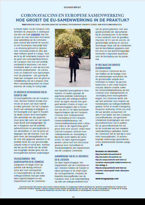 Dit artikel schreef ik al maanden geleden voor de rubriek Europees Recht van Vlamingen In de Wereld, in het wintermagazine van de Stichting, jaargang 2021.